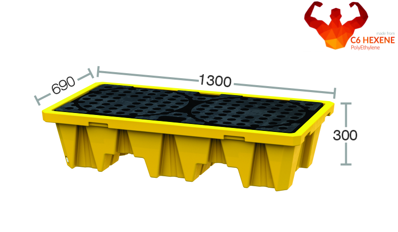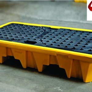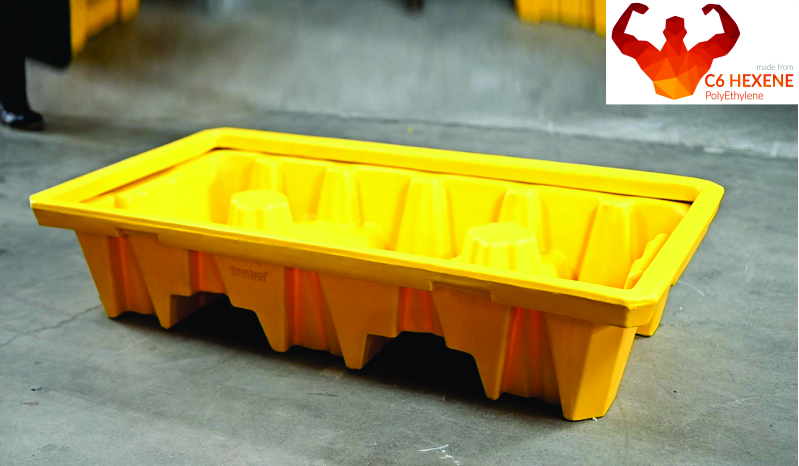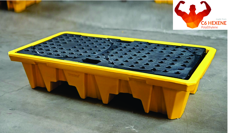 Very robust two-drum spill pallet. The C6 Hexene PE construction offers good chemical resistance and long-term durability. Slightly premium feel, overall very reliable.