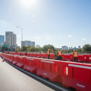 The Frontier 2-Meter Dominator Barrier is a heavy-duty, water-filled road safety barrier designed for traffic control, construction zones, toll plazas, and high-impact areas. UV-stabilised, interlocking, and 100% recyclable, it delivers maximum visibility, stability, and long-term outdoor performance.