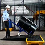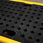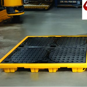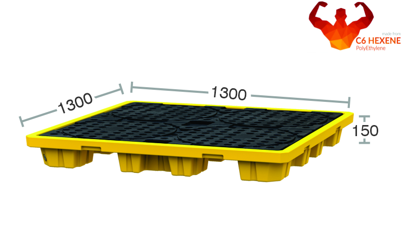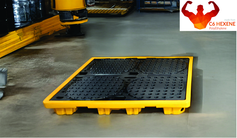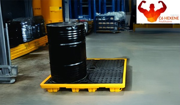 Extremely sturdy 4-drum spill pallet. The C6 hexene polyethylene construction provides excellent strength and resists deformation even under full load.