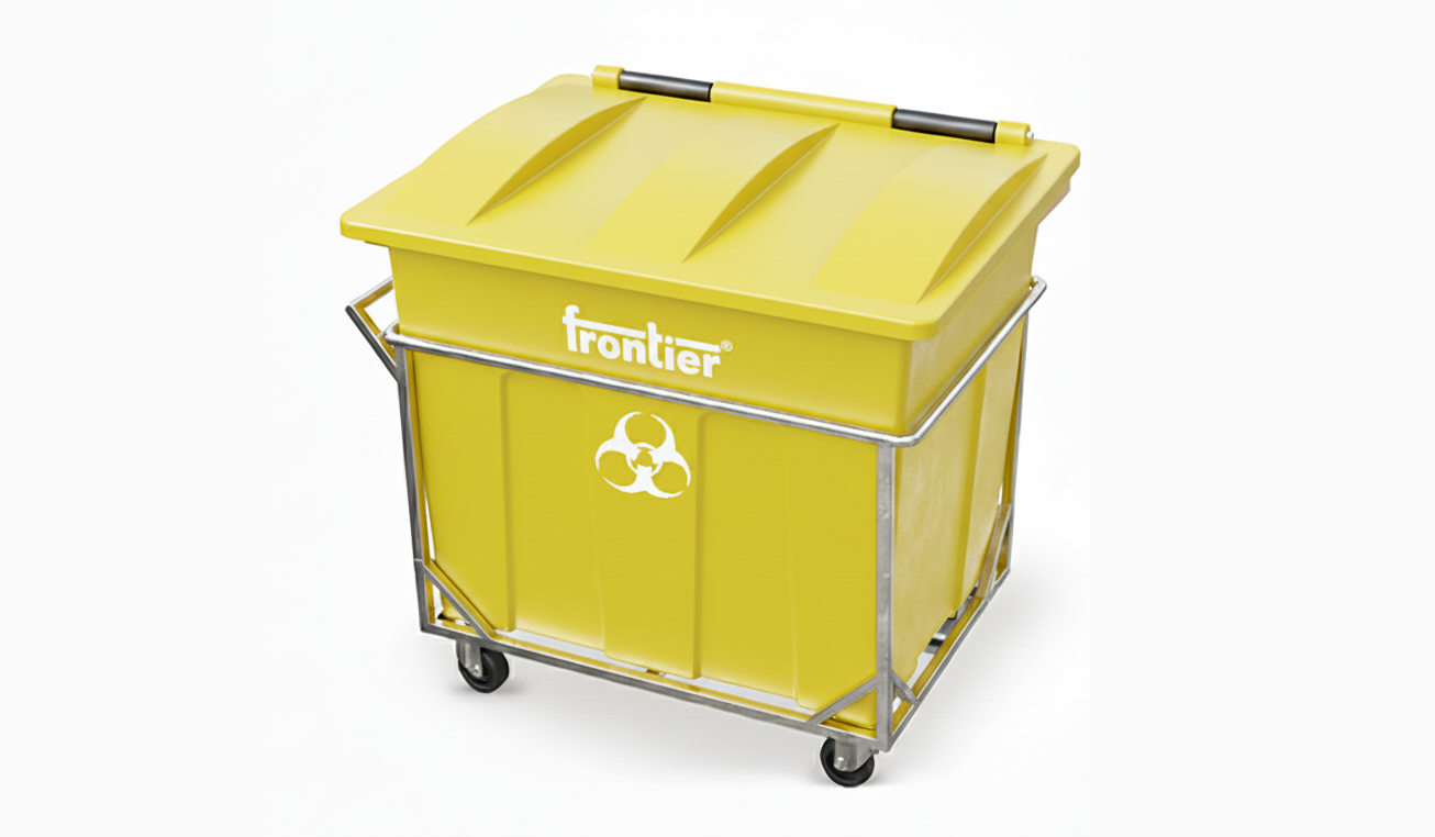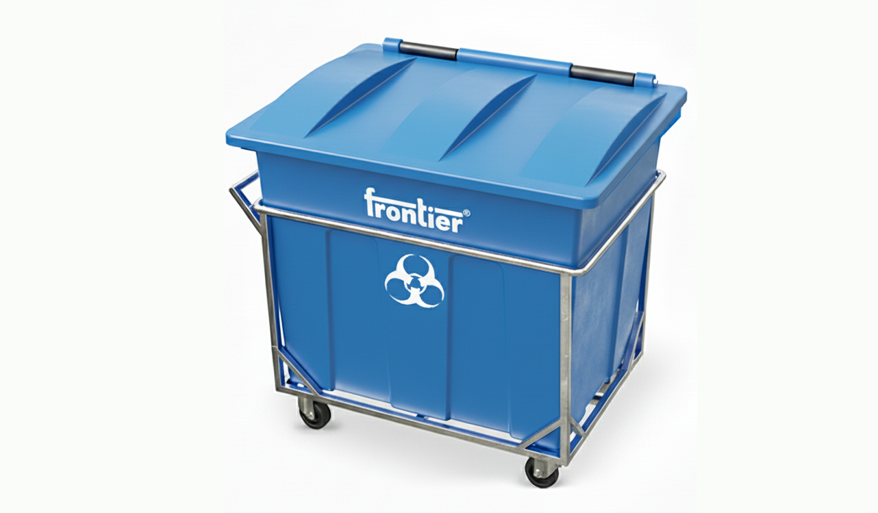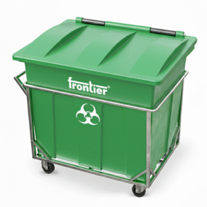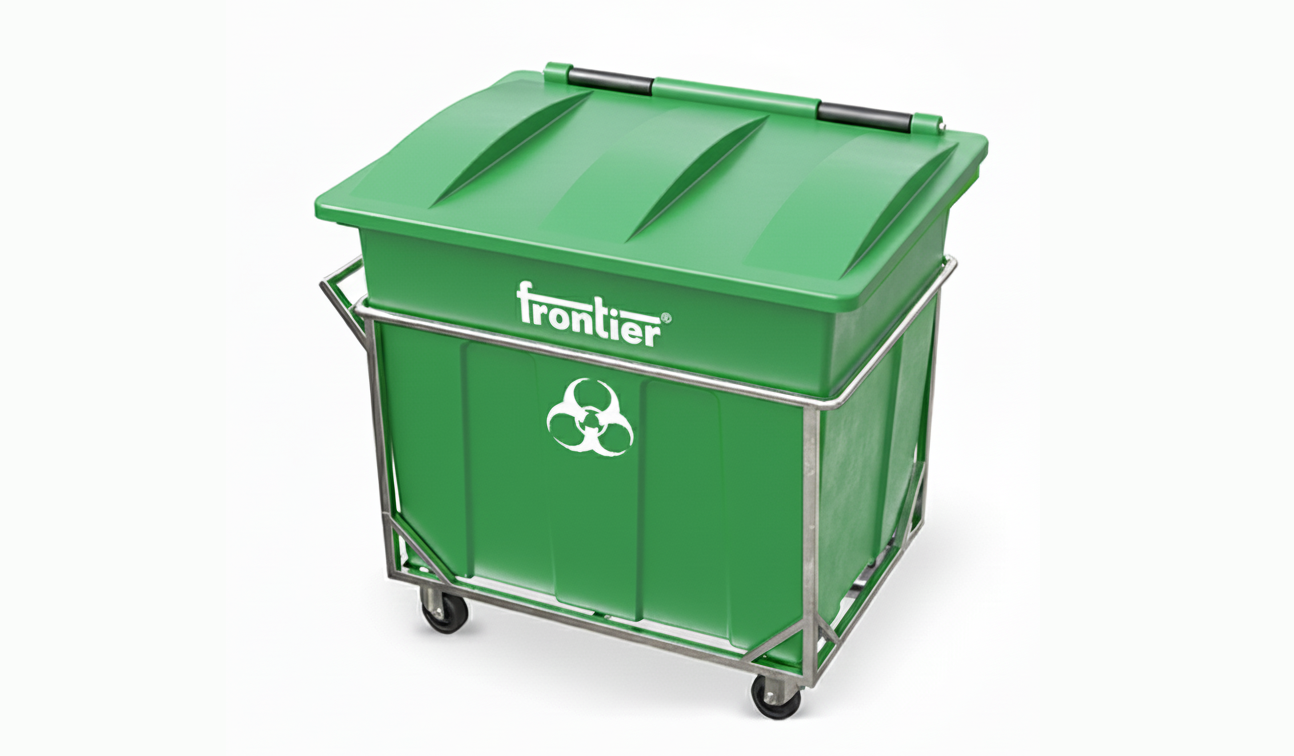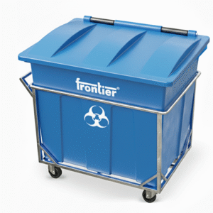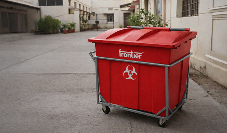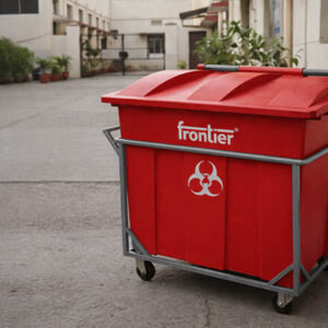 Frontier Bio Community Bins are built for safe, hygienic, high-volume biomedical and wet waste collection in hospitals, labs, municipalities, and public health facilities. Made from UV-stabilized, 100% recyclable polymer with a hinged lid and load-bearing MS trolley, they ensure spill control, easy mobility, and long-term outdoor durability.
