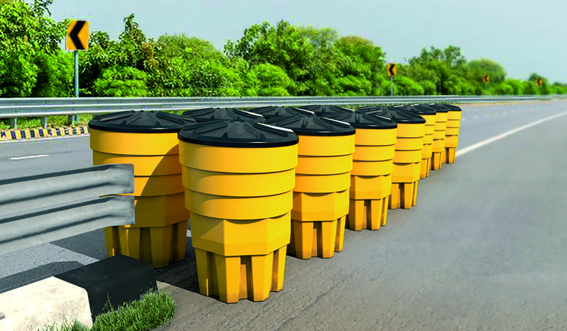 The Frontier Sand Attenuator is a high-performance crash impact safety system designed to absorb vehicle collision energy and reduce accident severity. Engineered with UV-stabilised, non-fading polymer construction, this modular sand-filled barrier delivers controlled deceleration, high visibility, and long-term outdoor durability, making it ideal for high-risk road ends, medians, toll plazas, flyovers, and highway diverge points.