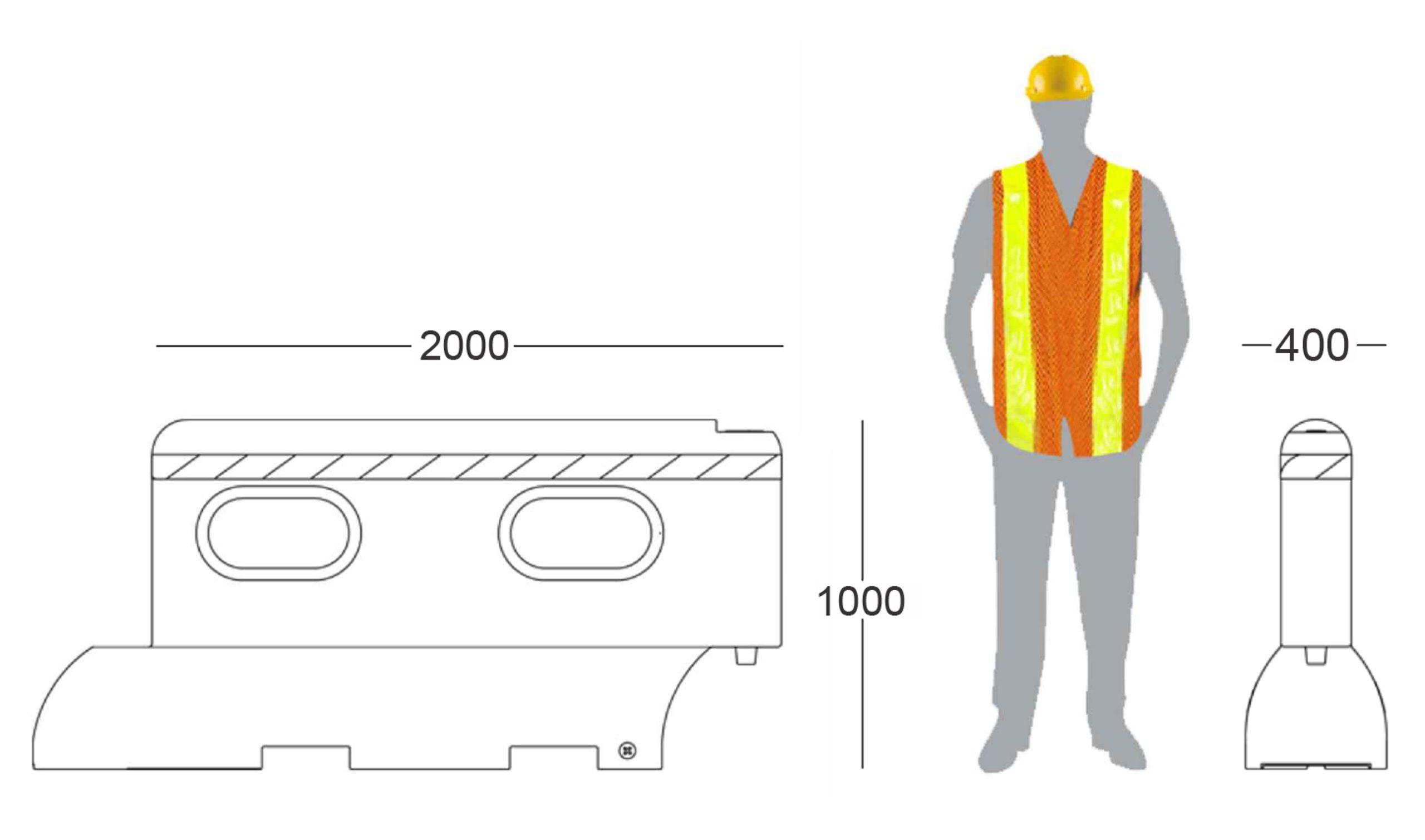 The Frontier 2-Meter Euro Barrier is a high-impact, water-filled traffic safety barrier designed for efficient traffic management, lane segregation, and crowd control. Manufactured from UV-stabilized, non-fading polyethylene, this durable barrier features an interlocking design, reflective safety elements, and optimal dimensions for use across highways, construction zones, and public infrastructure projects.