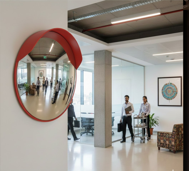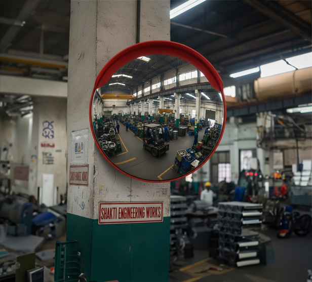 Traffic Safety Convex Mirrors are easy to install – they are mounted simply and easily with the brackets. Wide-angle vision permits you to see around blind corners and into hidden corners. These Polycarbonate Convex mirrors need to be placed at strategic locations to avoid collision of vehicles. Made from a durable sheet of Polycarbonate, these convex mirrors provide year-long vision. We are one of the largest convex mirror suppliers in India.