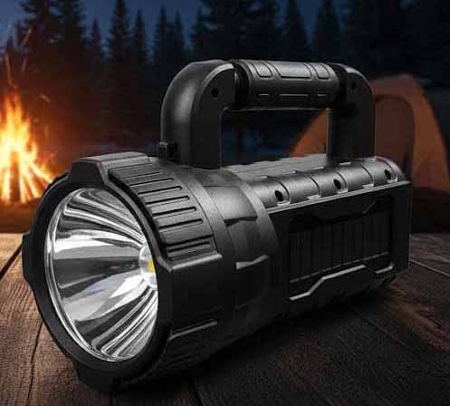 The Frontier LED Searchlight FSL-M4 is a high-performance, rechargeable 15W LED search light engineered for long-range illumination up to 1 km. Featuring an inbuilt solar charging panel, 6000mAh Li-ion battery, multiple lighting modes, and a rugged weather-resistant body, it is ideal for security patrols, industrial operations, emergency response, railways, marine use, and outdoor surveillance.