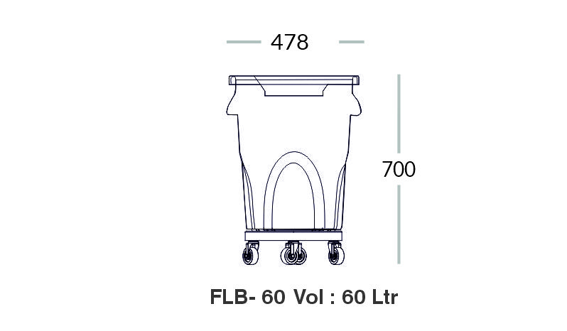 The bin has a 60-litre capacity, ideal for medium-volume waste handling in commercial environments.