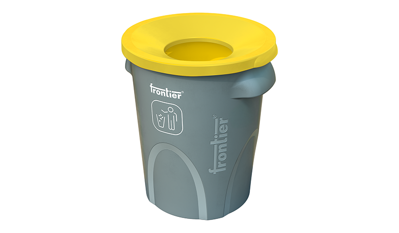 The Frontier Round Bin 80 Litre with Sloping Lid is a durable, hygienic kitchen waste bin designed for commercial kitchens, hotels, restaurants, and food service areas. Made from 100% recyclable polymer, it offers easy waste disposal, long service life, and compatibility with mobile dollies for efficient daily operations.
